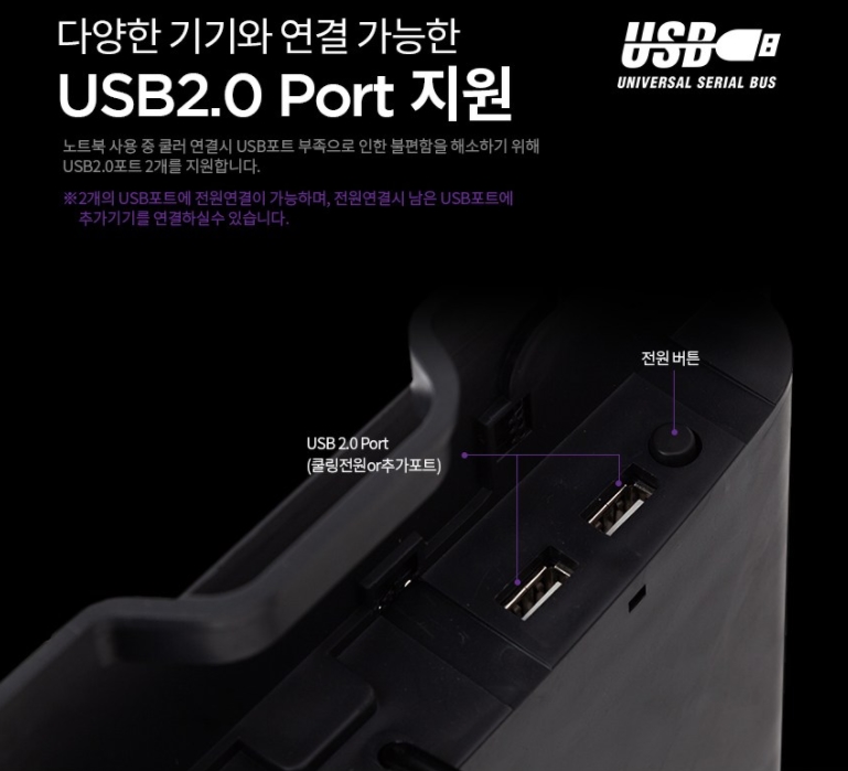 ํ๋์ USB ํฌํธ์ ์ฟจ๋ฌ๋ฅผ ์๋ํ๊ธฐ ์ํด์ ๋ ธํธ๋ถ๊ณผ ์ฐ๊ฒฐํด์ฃผ๋ฉด ๋ฉ๋๋ค.