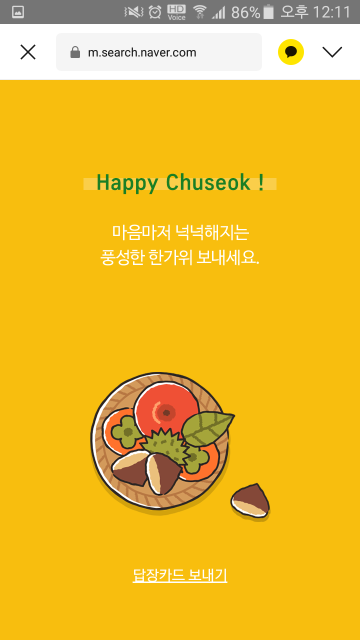 ๊ณง ์ถ์๋ช ์ ์ด ์ฝ์์ธ๋ฐ์, ์นด์นด์คํก์ผ๋ก ์ถ์ ์นด๋ ๋ณด๋ด๊ธฐ๋ฅผ ์ํ์๋ ๋ถ๋ค์ด ๋ง์ผ์ ๊ฒ ๊ฐ์์.์ง์ธ๋ค์๊ฒ ์นด์นด์คํก์ผ๋ก ์ถ์ ์นด๋๋ฅผ ๋ณด๋ด๊ธฐ๋ฅผ ํ๊ณ ์ถ๋ค๋ฉด ์ฐ์ ์นดํก ์ถ์ ์ธ์ฌ๋ง์ด ๊ฐ๋ฅํ ์ด๋ฏธ์ง๊ฐ ํ์ํฉ๋๋ค.