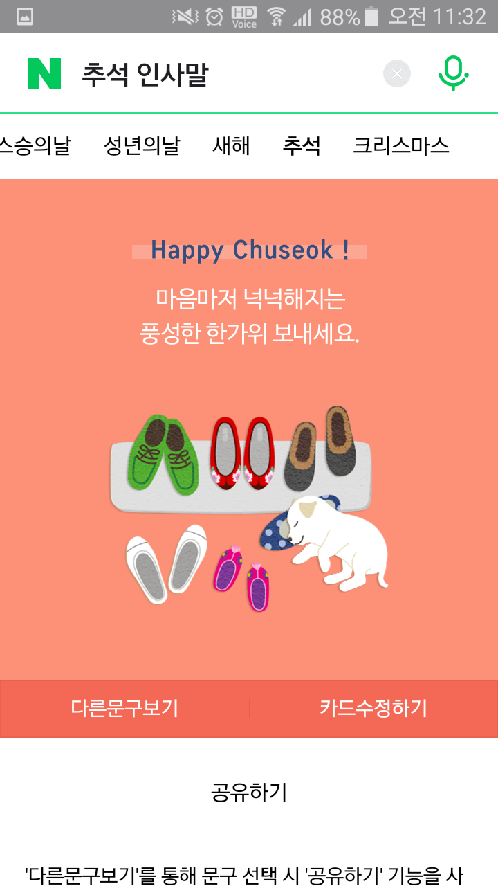 ์ด๋ ๊ฒ ์ถ์์นด๋๊ฐ ๋ณด๋ด์ก์ต๋๋ค.
