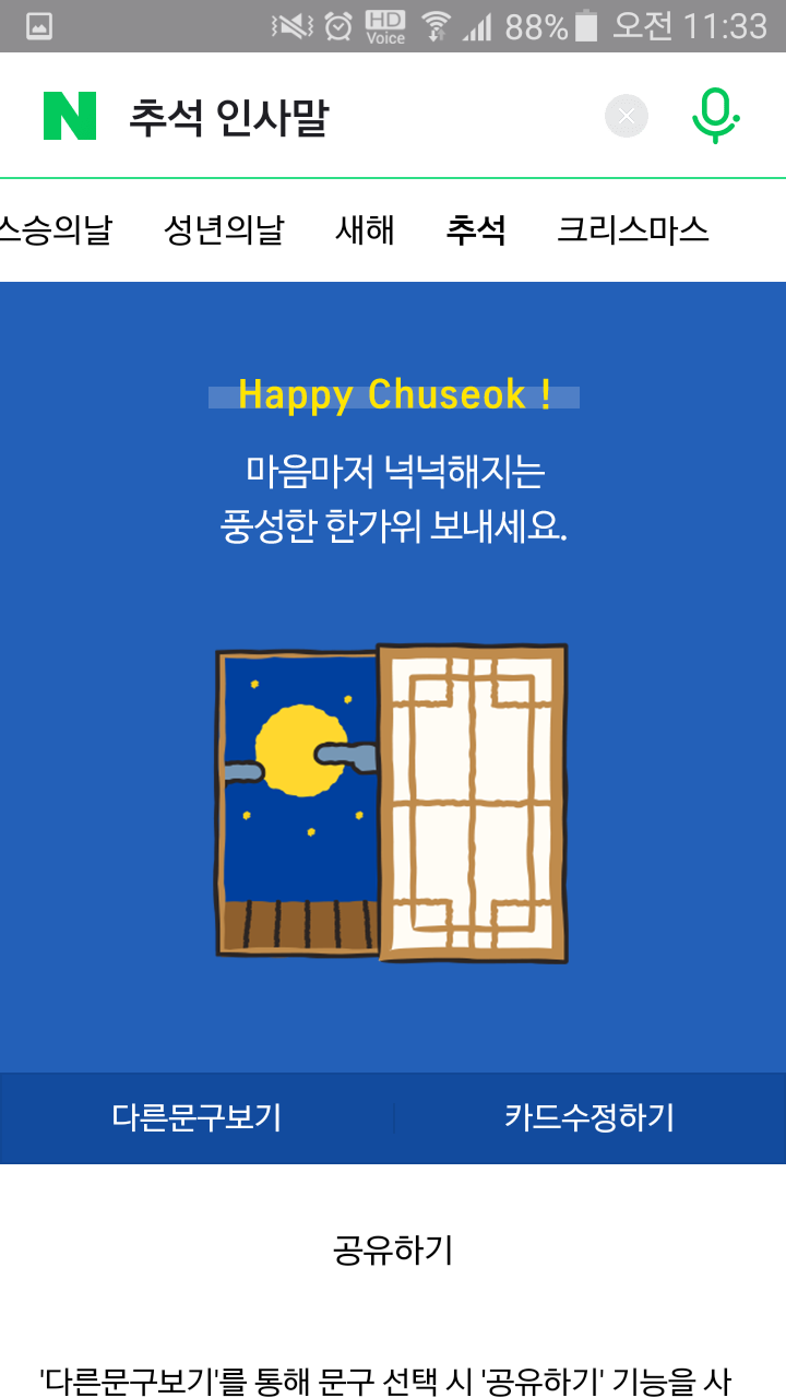 ์ถ์์ ๊ฐ์ฌํ๋ ๋ง์์ ์ ํ๋ ์ถ์ ์ธ์ฌ๋ง์ ์ ํ์ธ์. ์ถ์ ์ธ์ฌ๋ง๊ณผ ์ถ์ ์ ๋ฌผ๊ฐ์ฌ ์ธ์ฌ๋ง, ์ถ์ ์ ๋ฌผ ์ธ์ฌ๋ง๊ณผ ์ด๋ฏธ์ง๋ฅผ ๋ฌด๋ฃ ๊ณต์ ํฉ๋๋ค. ์ฝ๋ก๋๋ก ์ธํด ์ง์ ์ฐพ์๋ต์ง ๋ชปํ๋ ๊ฒฝ์ฐ ์ถ์