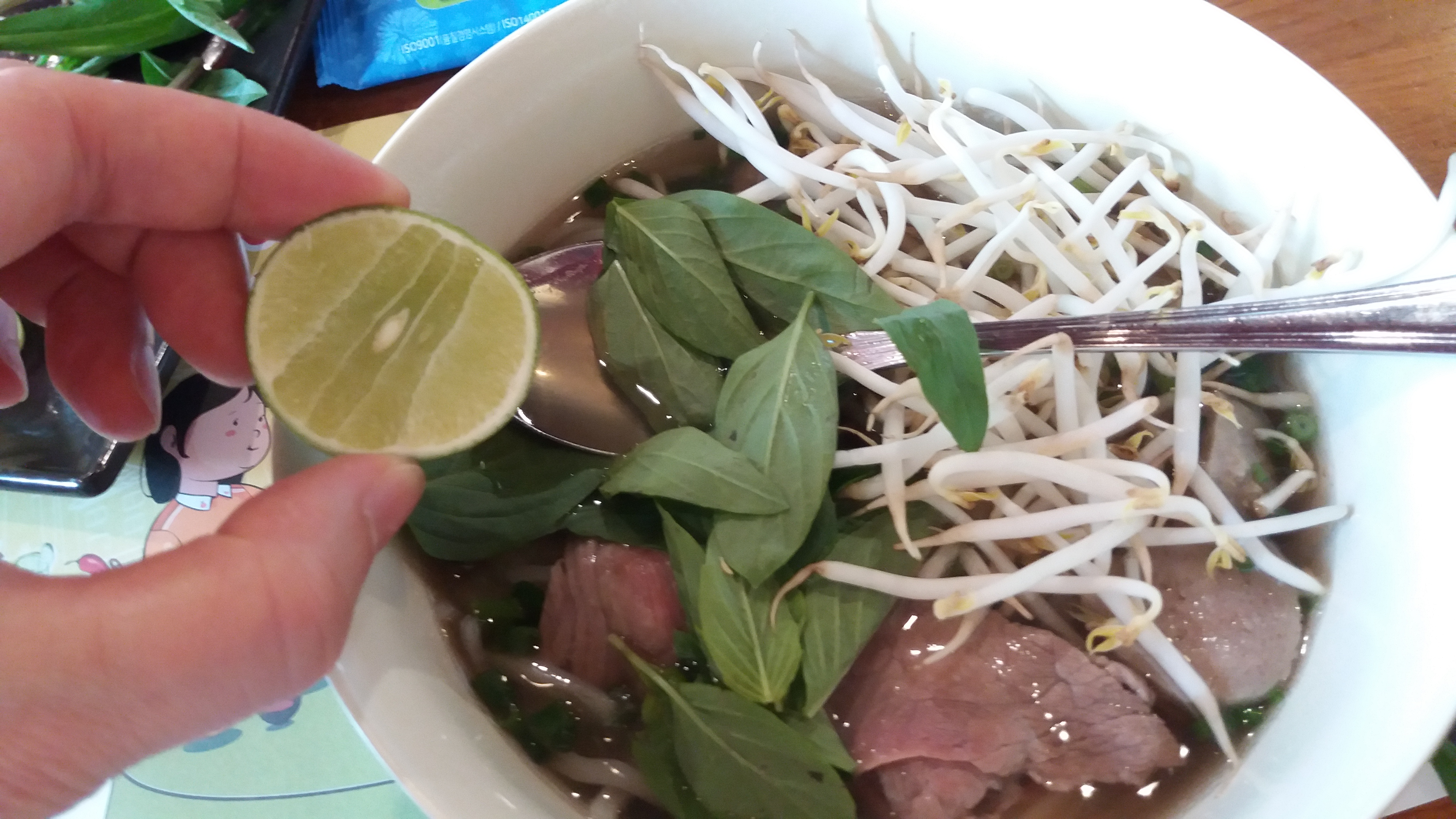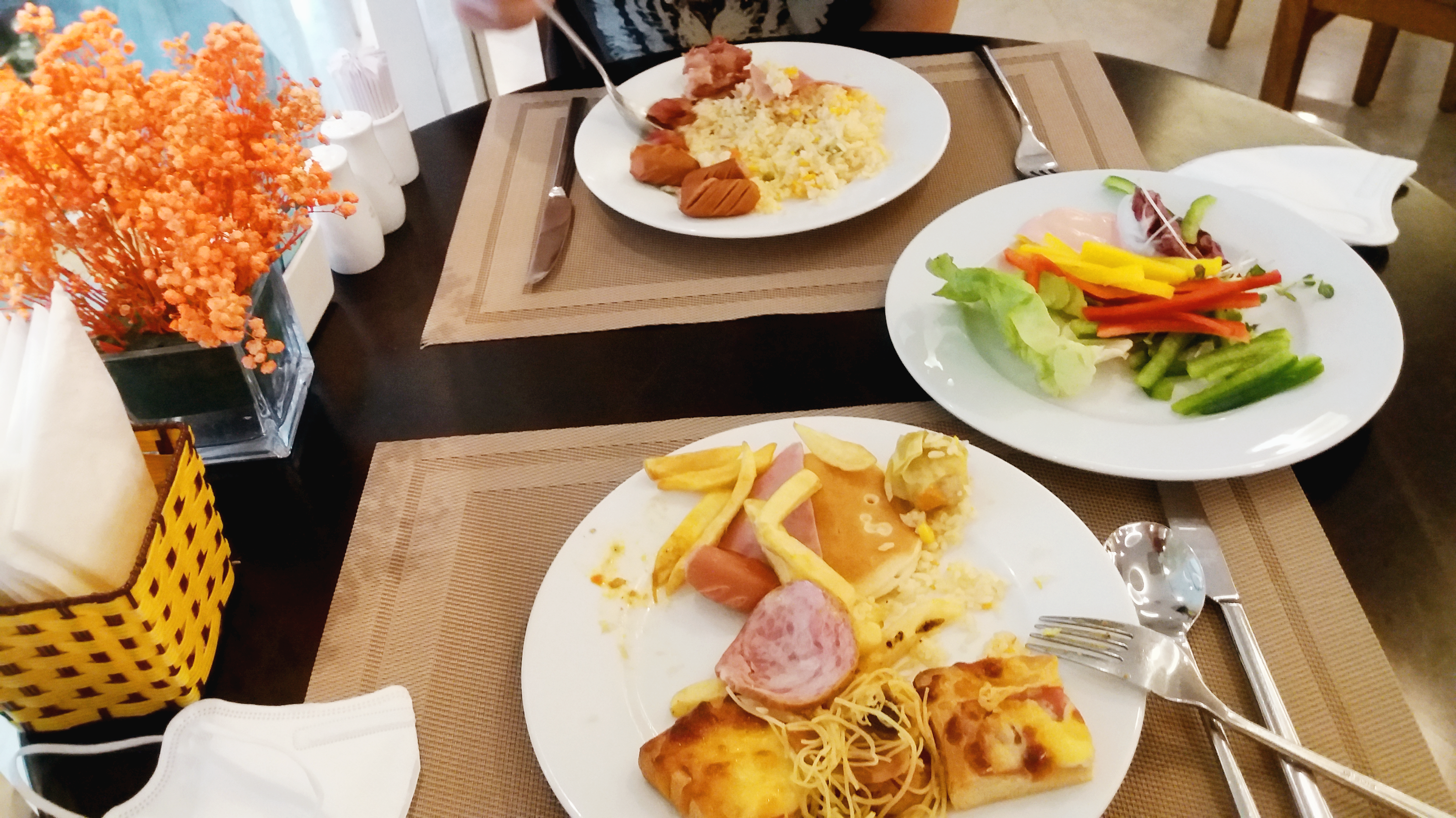 ๋ : (์- ์ง์ณ. ๋ฐฐ๊ณ ํ๋ ๋นจ๋ฆฌ ๊ฐ์ ๋จน์.) No, I'm ok.