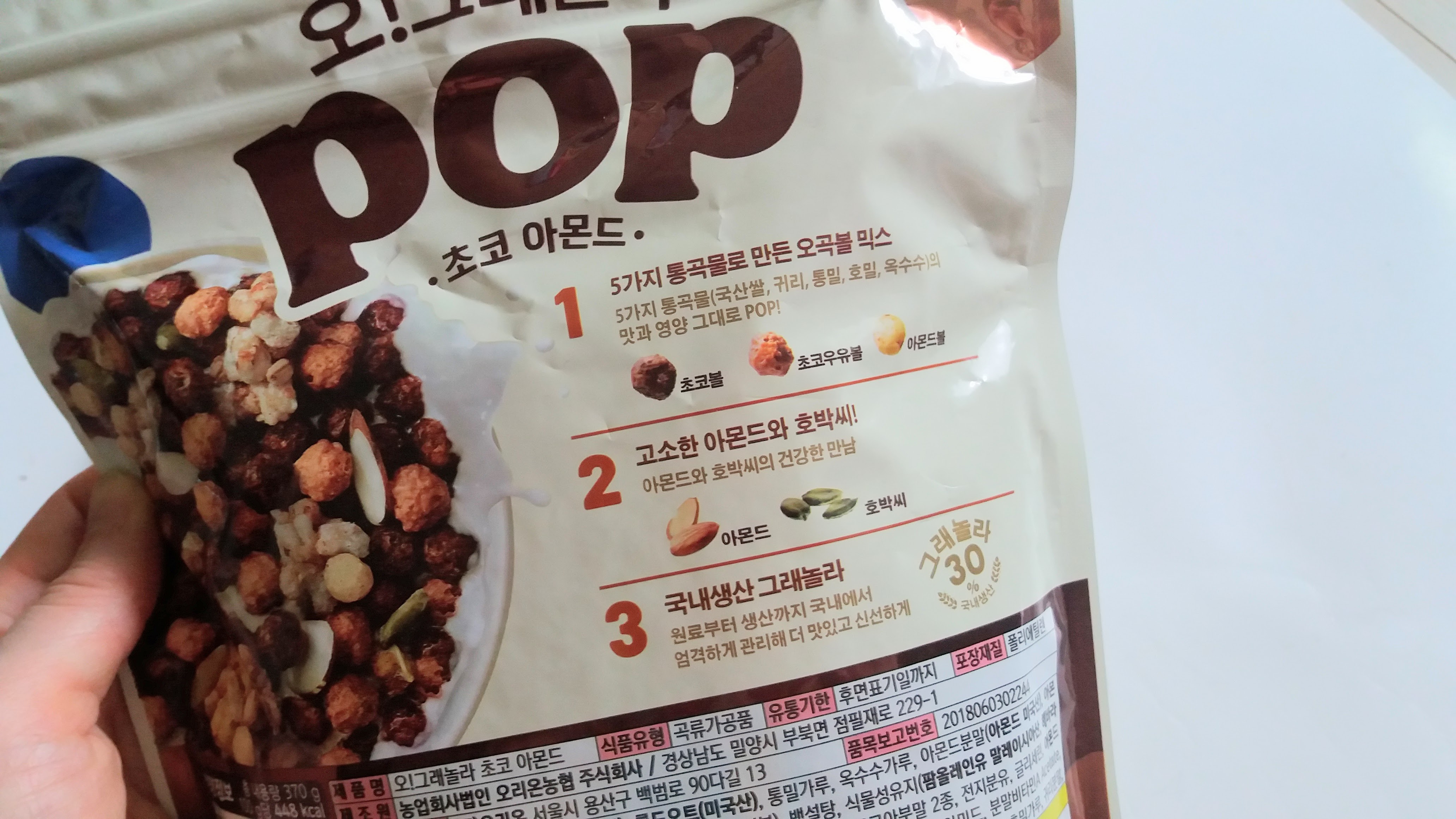 ํธ๋ฐ์จ, ํฌ๋๋ฒ ๋ฆฌ, ์๋ชฌ๋ ๋ค์ด์๊ณ , 5๊ฐ์ง ํต๊ณก๋ฌผ์ด ๋ค์ด ์๋ค๊ณ ํ๋๋ฐ ๋ญ๊ฐ ํ์ธํด๋ดค์ด์.