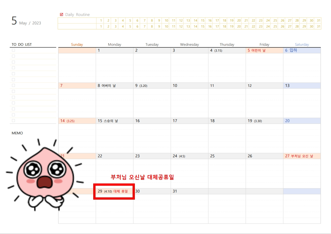 λΆμ²λ μ€μ λ μ΄ λ체곡ν΄μΌλ‘ νμ λμμ΅λλ€. μ¬ν΄ 2023λ μ λΆμ²λ μ€μ λ μ 5μ 27μΌ, μλ ₯μΌλ‘ 4μ 8μΌμΈλ° ν μμΌμΌλ‘ μ£Όλ§ν΄μΌκ³Ό κ²Ήμ³μ Έμμ΅λλ€. μ λΆλ λ체곡ν΄μΌ νλλ₯Ό μ μ©νλ μ