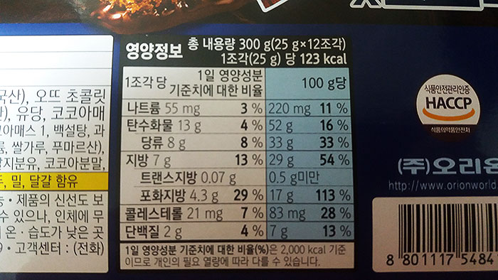 ์ค๋จ ์ผ์ฝ๋ผ ์นผ๋ก๋ฆฌ 1์กฐ๊ฐ์ 123kcal