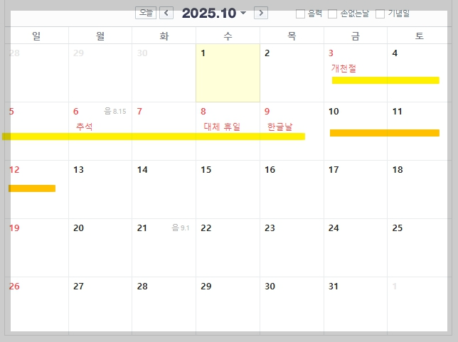 2025λ μ 체 λ¬λ ₯μ λλ€. 1λ μ νλμ λ³Ό μ μμ΅λλ€.