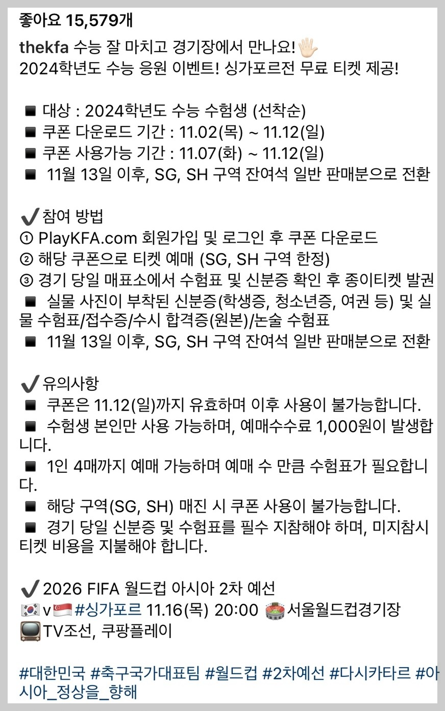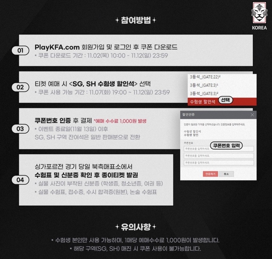 2024ํ๋ ๋ ์๋ฅ ์์ ์ด๋ฒคํธ๋ก ์ํ์์๊ฒ ๋ํ๋ฏผ๊ตญ ์ฑ๊ฐํฌ๋ฅด ์ถ๊ตฌ ํฐ์ผ์ ๋ฌด๋ฃ ์ ๊ณตํฉ๋๋ค. ์ํ์ ๋ณธ์ธ๋ง ์ฌ์ฉ๊ฐ๋ฅํฉ๋๋ค.
