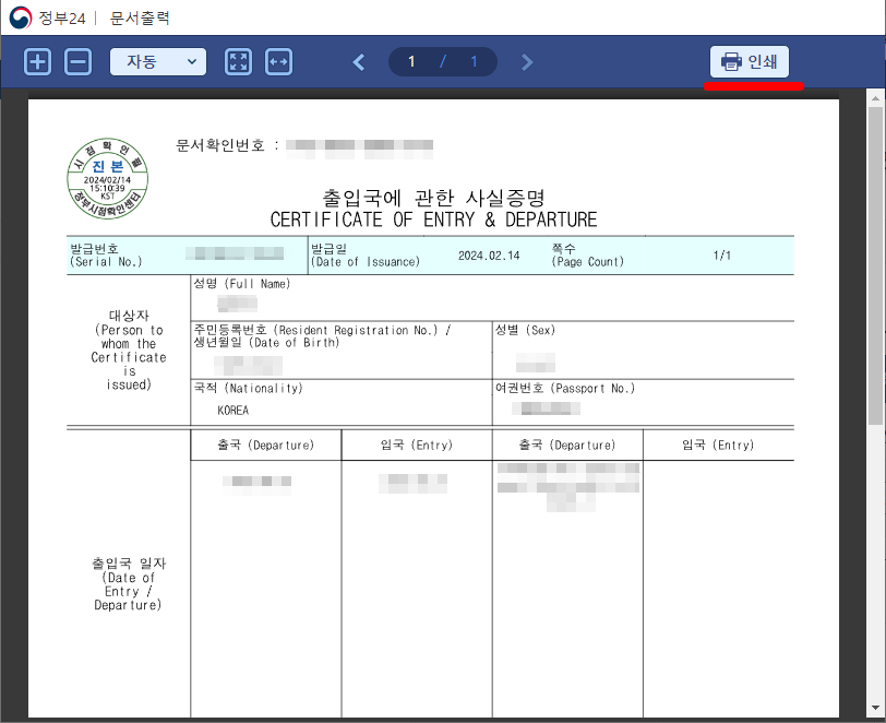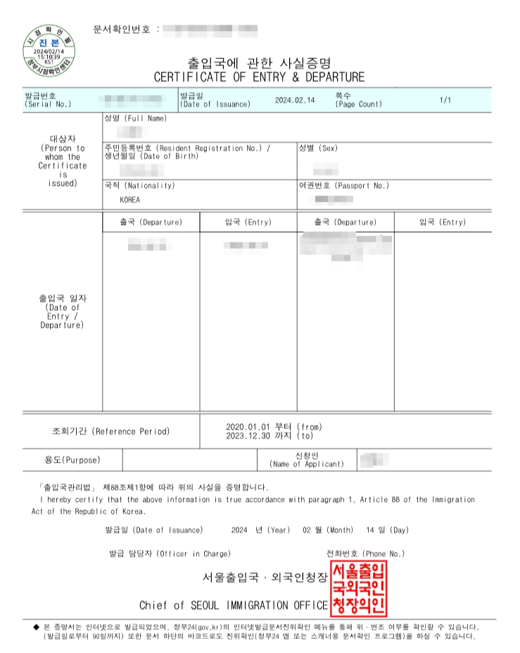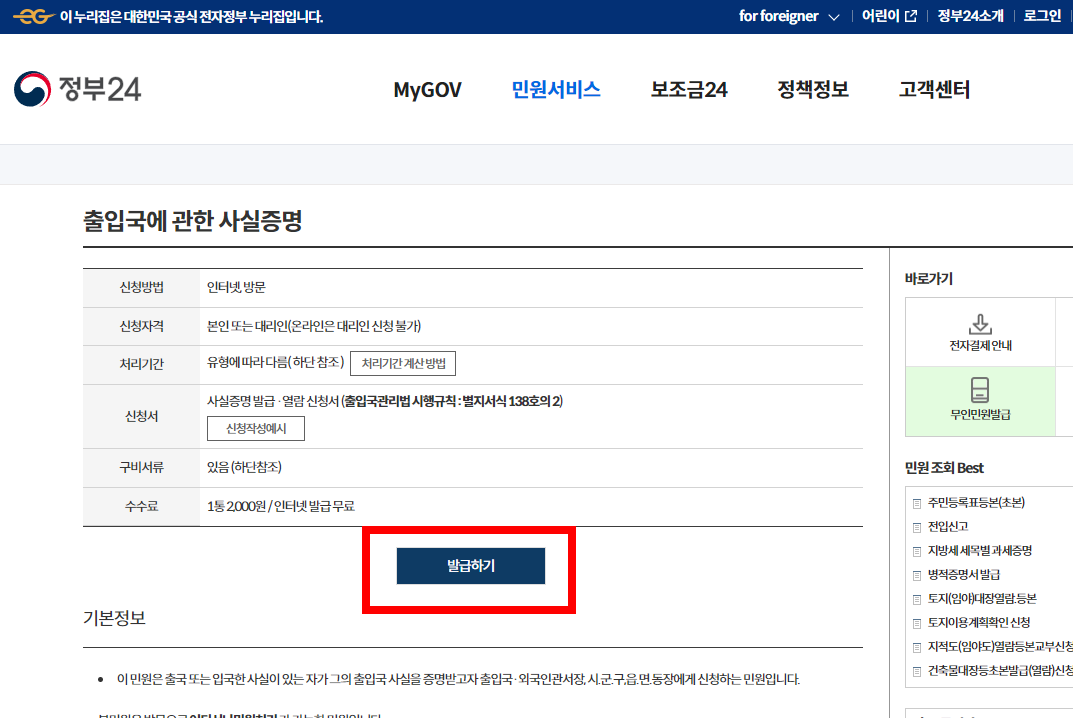 (์ ๋ถ24 ํํ์ด์ง์์ ๋ณธ์ธ, ๋ฏธ์ฑ๋ ์๋ , ์ธ๊ตญ์ธ ์ถ์ ๊ตญ์ฌ์ค์ฆ๋ช ์๋ฅผ ์ฆ์ ๋ฐ๊ธ๋ฐ์ ์ ์์ต๋๋ค.)