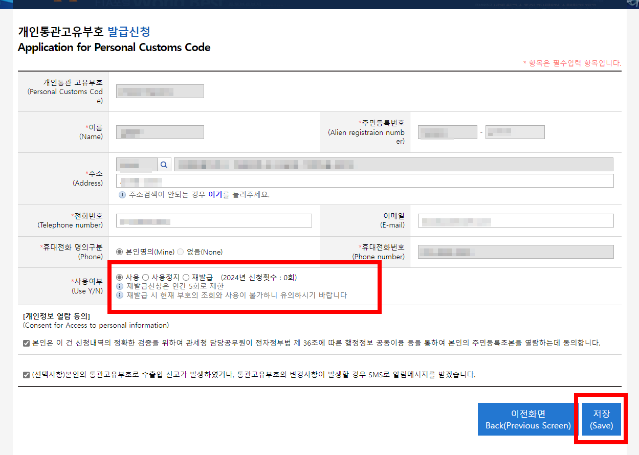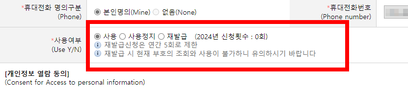๋๋ ๊ฐ์ธํต๊ด๊ณ ์ ๋ถํธ๋ฅผ ์ฌ๋ฐ๊ธ๋ฐ์ ์ ์์ต๋๋ค. ๊ฐ์ธํต๊ด๊ณ ์ ๋ถํธ ์์ ํ์ด์ง์์ ์ฌ์ฉ์ฌ๋ถ๋ฅผ ์ ํํ์ธ์. ๊ฐ์ธํต๊ด๊ณ ์ ๋ถํธ ์ฌ๋ฐ๊ธ๋ฐ์ ๊ฒฝ์ฐ, ์ฌ๋ฐ๊ธ์ ์ ํํ๊ณ ์ ์ฅํ๋ฉด ๋ฉ๋๋ค. ์ฌ๋ฐ๊ธ์ ์ฐ๊ฐ 5ํ๋ก ์ ํ๋์ด ์์ต๋๋ค. ๊ธฐ์กด์ ๋ฐ๊ธ๋ฐ์ ๊ฐ์ธํต๊ด๊ณ ์ ๋ถํธ๋ ์ฌ์ฉ์ ์ง ๋ฉ๋๋ค. ๊ฐ์ธํต๊ด๊ณ ์ ๋ถํธ๋ฅผ ์์ ๊ณ ์ ํ ๋๋ "์ฌ์ฉ์ ์ง"๋ฅผ ์ ํํ๋ฉด ๋ฉ๋๋ค.