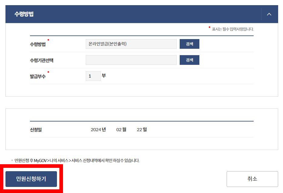 ๋ฐ๊ธ ์ ์ฒญํ์ด์ง์์ "๋ฐ๊ธํ๊ธฐ"๋ก ๋ค์ด๊ฐ๋๋ค.