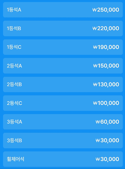 ํ๋ฆฌ๋ฏธ์, 1๋ฑ์, 2๋ฑ์, 3๋ฑ์, ํ ์ฒด์ด์์ผ๋ก ๋๋์ด ์์ต๋๋ค. ํ ์ฒด์ด์์ ์ ์ธํ ์ข์์ A๋ถํฐ C๋ฑ๊ธ๊น์ง ๋ค์ ๋๋์ด ์์ต๋๋ค.