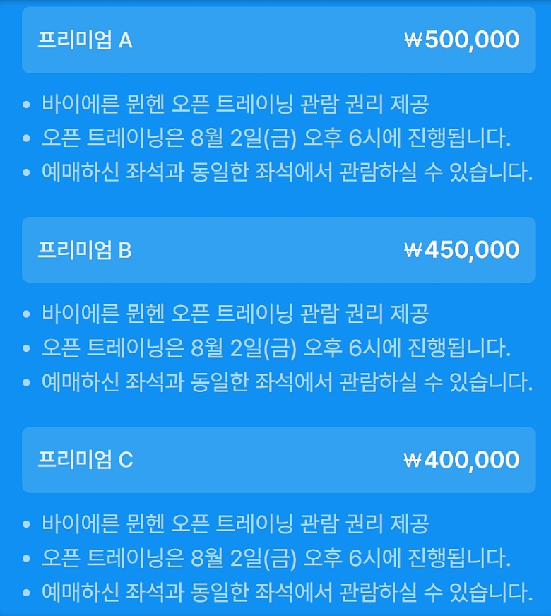 ์ฟ ํกํ๋ ์ด ํฐ์ผํ ์๋ฆผ์ค์ ํด ๋์ผ์๊ณ , ํฐ์ผ ์๋งค์ ์ ํํ๋ ๊ฒฝ๊ธฐ์ฅ ๊ตฌ์ญ๊ณผ ์ข์๋ ๋ฏธ๋ฆฌ ์ดํด๋ณด์๊ธฐ ๋ฐ๋๋๋ค. ์๋์์ ํฐ์ผ์๋งค ์์์ ํ์ธํ์ธ์.