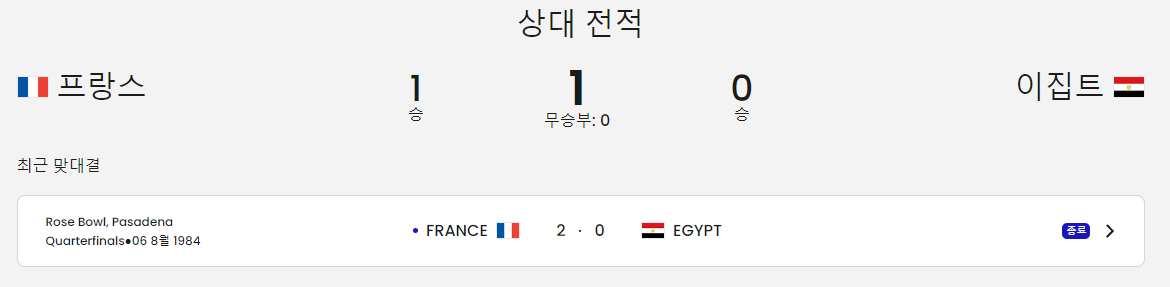 | ํ๋์ค vs ์ด์งํธ | 8์ 6์ผ 04 : 00 |