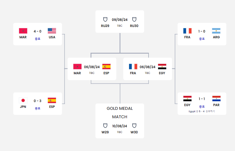 2024 ํ๋ฆฌ์ฌ๋ฆผํฝ ๋จ์ ์ถ๊ตฌ ๊ฒฐ์น ๋์งํ๊ฐ ์์ฑ๋์์ต๋๋ค. ํ๋ฆฌ์ฌ๋ฆผํฝ ๊ธ๋ฉ๋ฌ ๊ฒฐ์ ์ ์์ ๊ฒจ๋ฃฐ ๊ตญ๊ฐ๋ ํ๋์ค์ ์คํ์ธ์ ๋๋ค. ํ๋์ค ๋ ์คํ์ธ ์ถ๊ตฌ ์์ผ๋์นด๋ ์ ์์ ๊ตญ๊ฐ๋ํ ์ ์ ๋ช ๋จ์