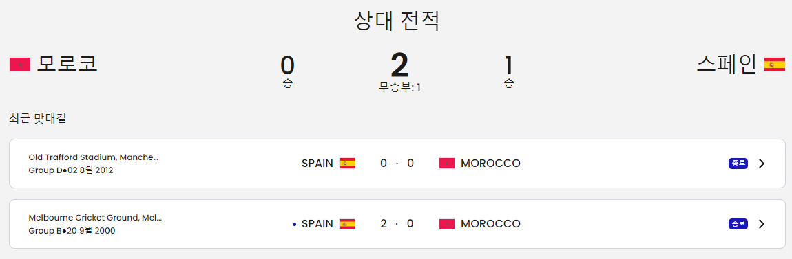 | ๋ชจ๋ก์ฝ vs ์คํ์ธ | 8์ 6์ผ 01 : 00 |