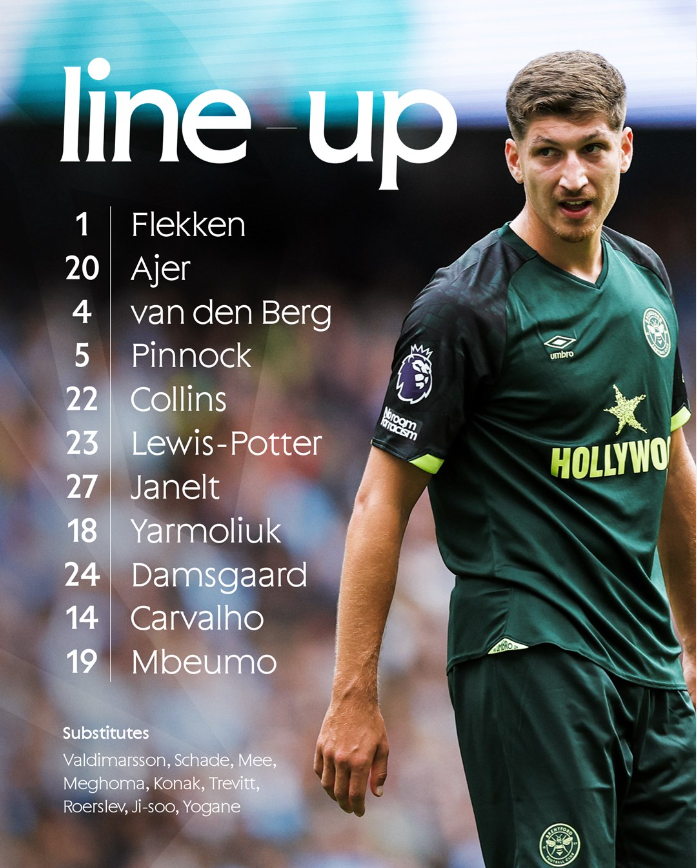 - ์๋น์ง: ์ผ์ชฝ ํ๋ฐฑ์ ๋ฆฌ์ฝ ํจ๋ฆฌ (Rico Henry) ๋์ ์์ ์์ค์ฌ (Yoane Wissa)๊ฐ, ์ค๋ฅธ์ชฝ ํ๋ฐฑ์ ๋ง๋์ค ๋ก์ฌ (Mads Roerslev)์ด ๋ฐฐ์น๋ ๊ฒ์ผ๋ก ์์๋ฉ๋๋ค. ์ค์ ์๋น์๋ ๋ฒค ๋ฏธ (Ben Mee)์ ์ํ ํผํฐ์จ (Ethan Pinnock)์ด ํธํก์ ๋ง์ถ ๊ฒ์ผ๋ก ๋ณด์ ๋๋ค.