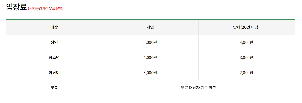 | ์ด๋ฆฐ์ด ๋ฐ ์ฒญ์๋ | 1์ธ 1ํ | 1,000์ | ๋ง 7์ธ๋ถํฐ ๋ง 19์ธ ๋ฏธ๋ง |