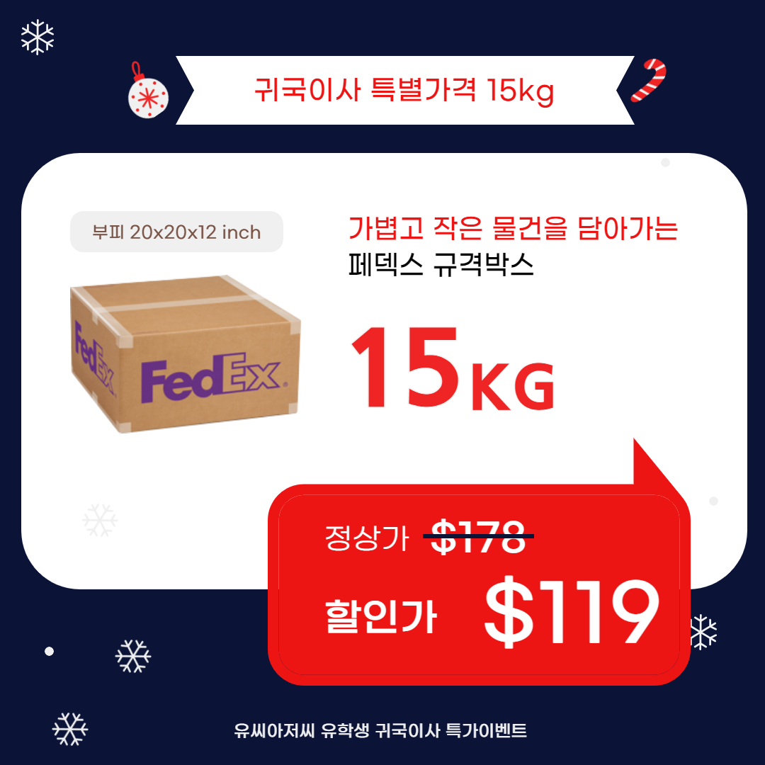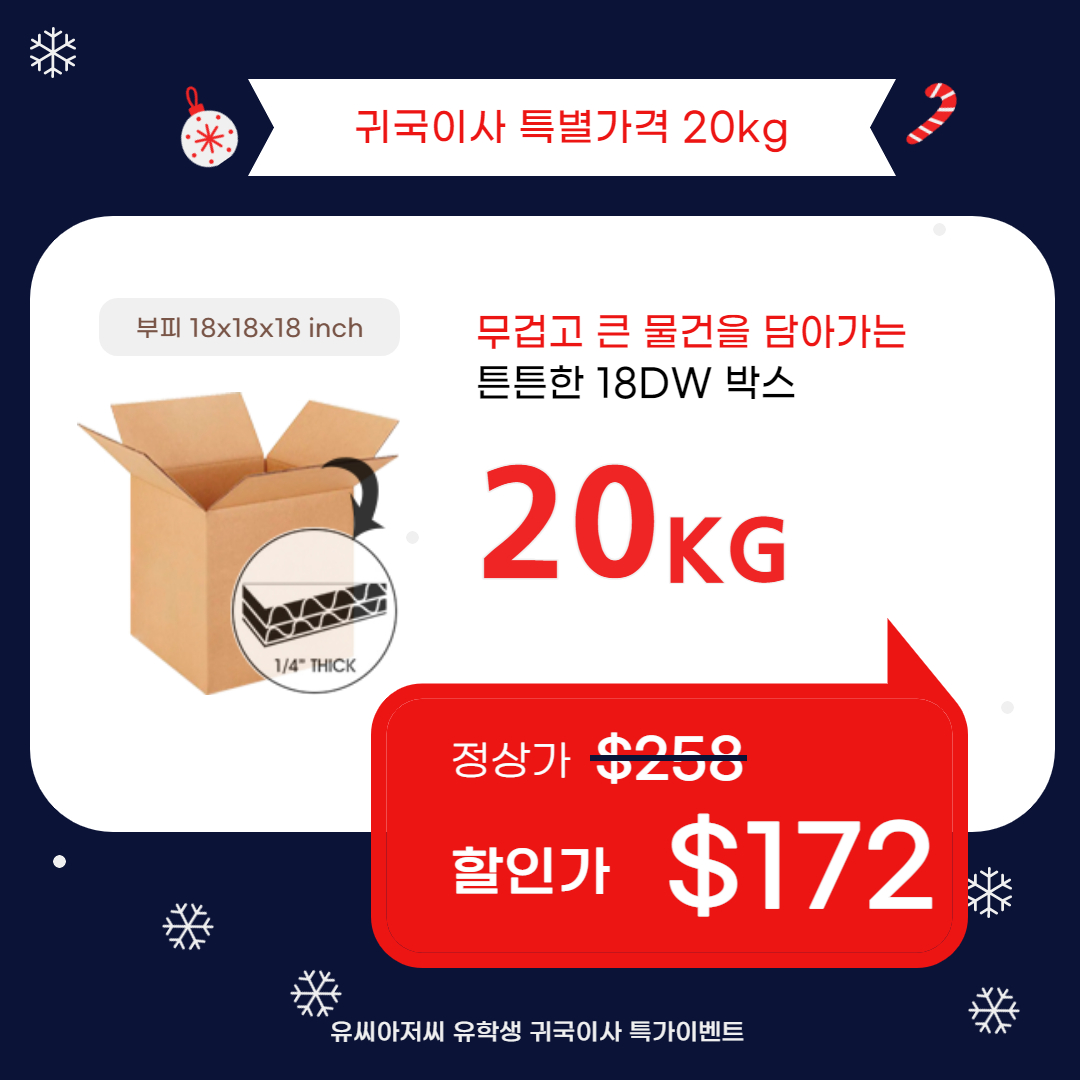 ๊ท๊ตญ์ด์ฌ ํจํน ๋ฐ์ค๋ 15kg๊ณผ 20kg ํน๋ณ๊ฐ๊ฒฉ์ด ์์ด์.