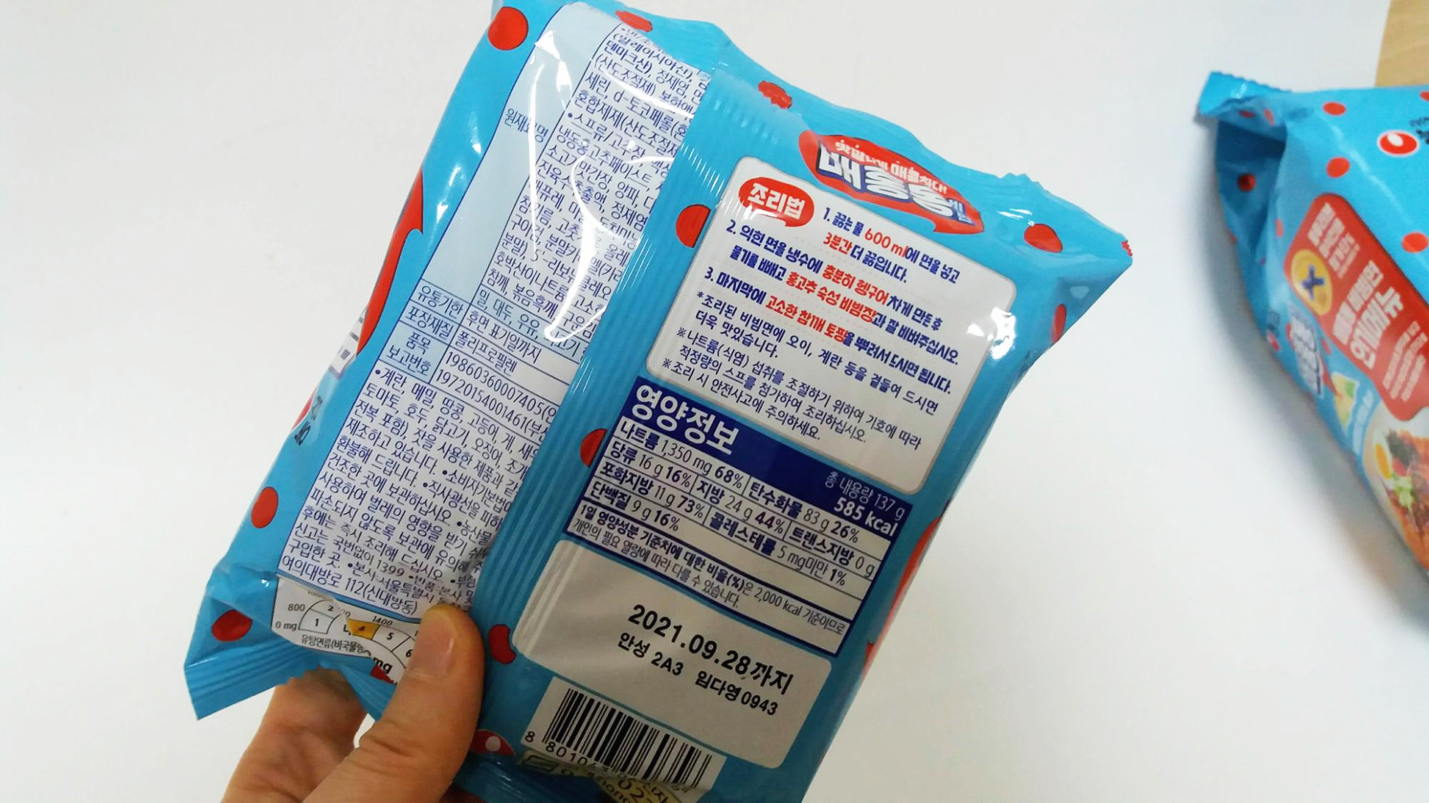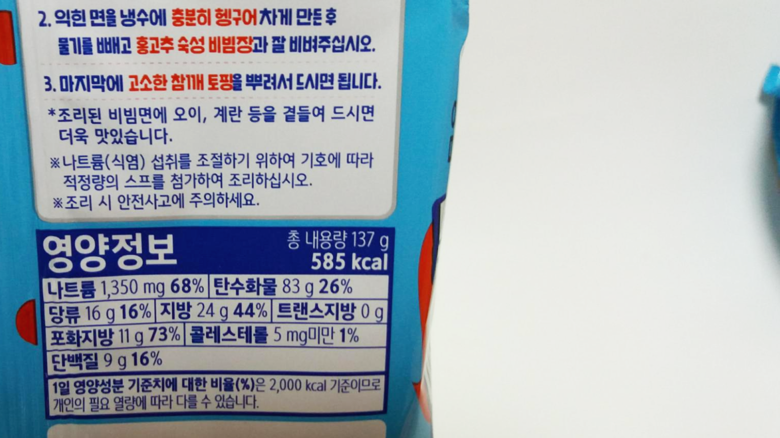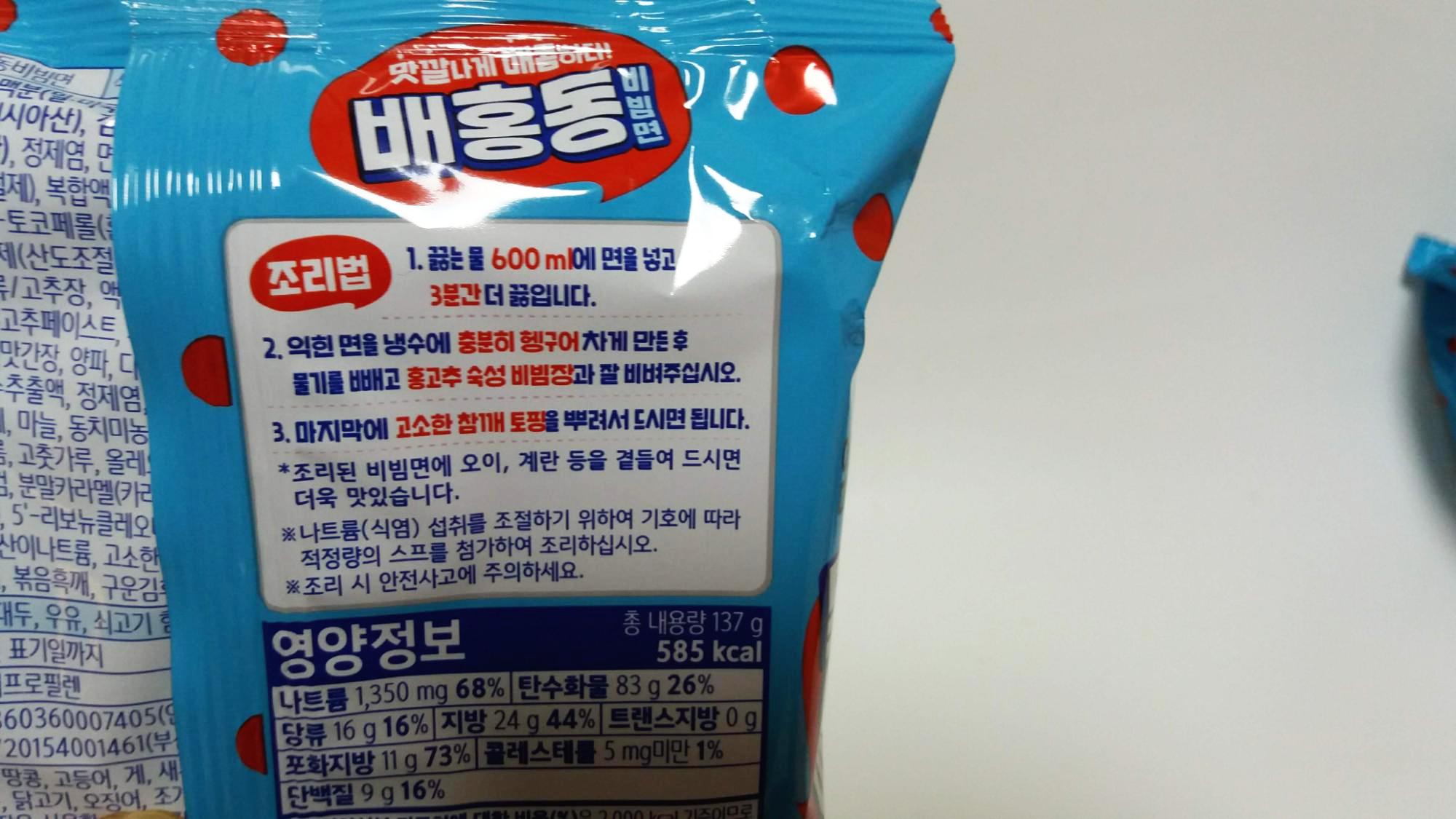 ๋ฐฐํ๋ ๋น๋น๋ฉด ์นผ๋ก๋ฆฌ๋ 585kcal์ด์์.