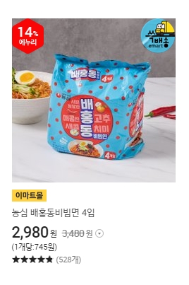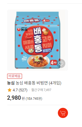 ๋ฐฐํ๋ ๋น๋น๋ฉด ๊ฐ๊ฒฉ์ 1๋ด์ง(4๊ฐ์ ) 2,980์์ด์์.